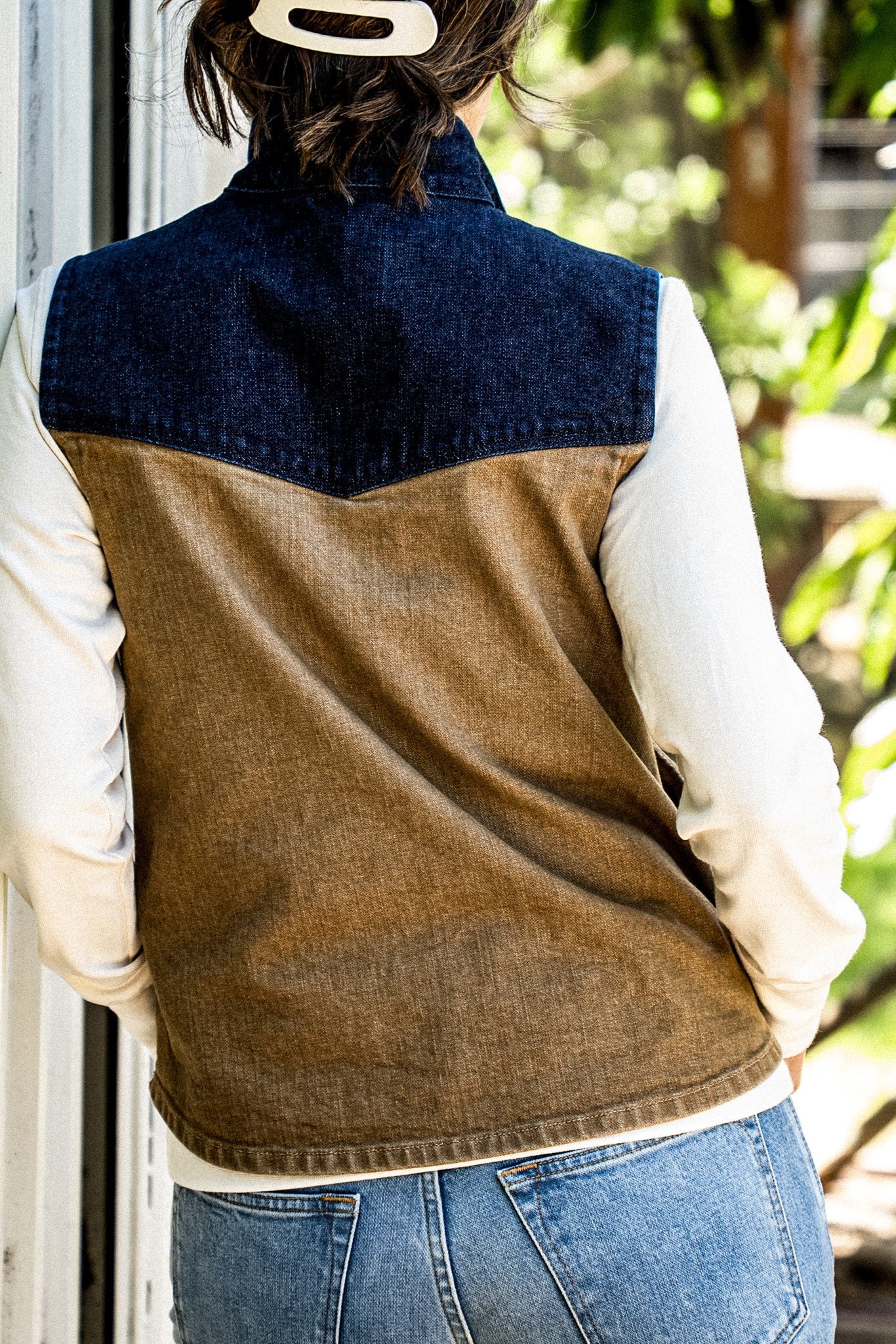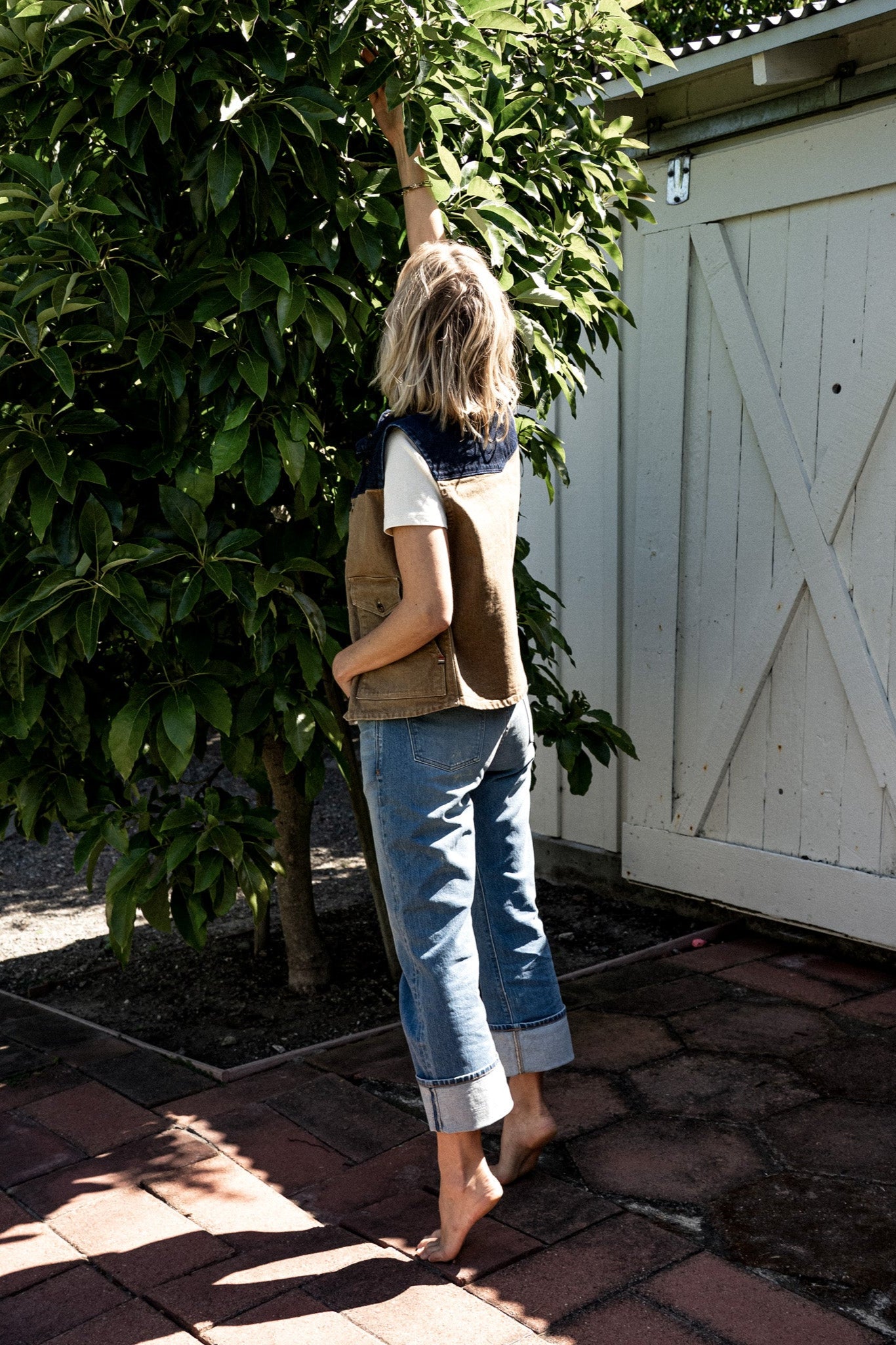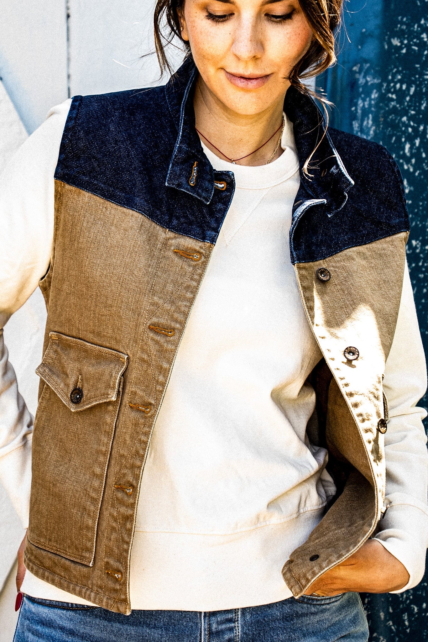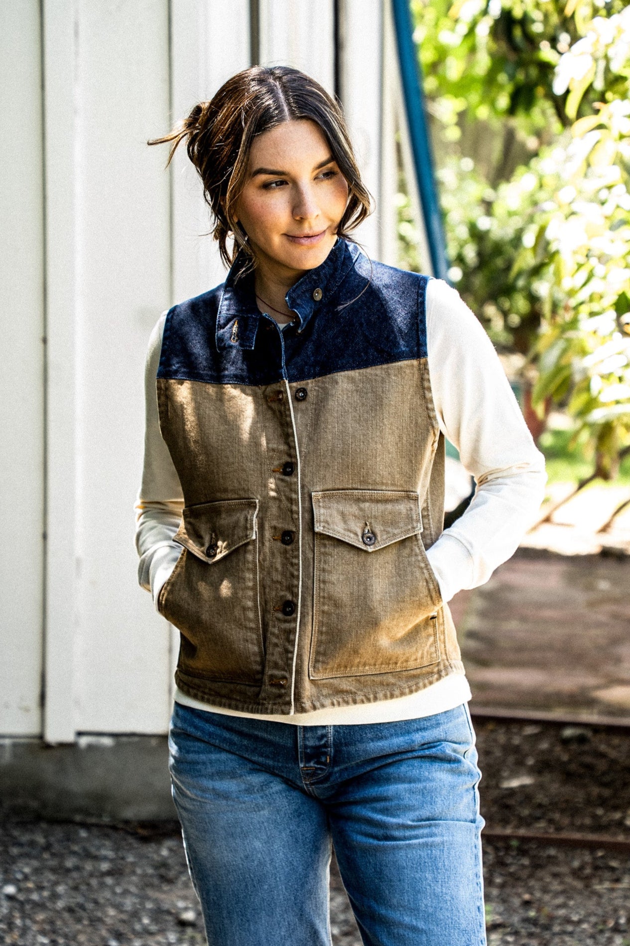 Practical, durable and looks great with anything. This vest only gets better with time. Inspired by our favorite vintage work and hunting jackets. Made with our 14oz broken twill denim from the 175-year-old Mount Vernon Mills in Georgia. 1/8th double needle seams throughout give extra strength. Double layered button pockets. Finished with tobacco key holes and our custom brass hardware made in Georgia. Fits true to size.