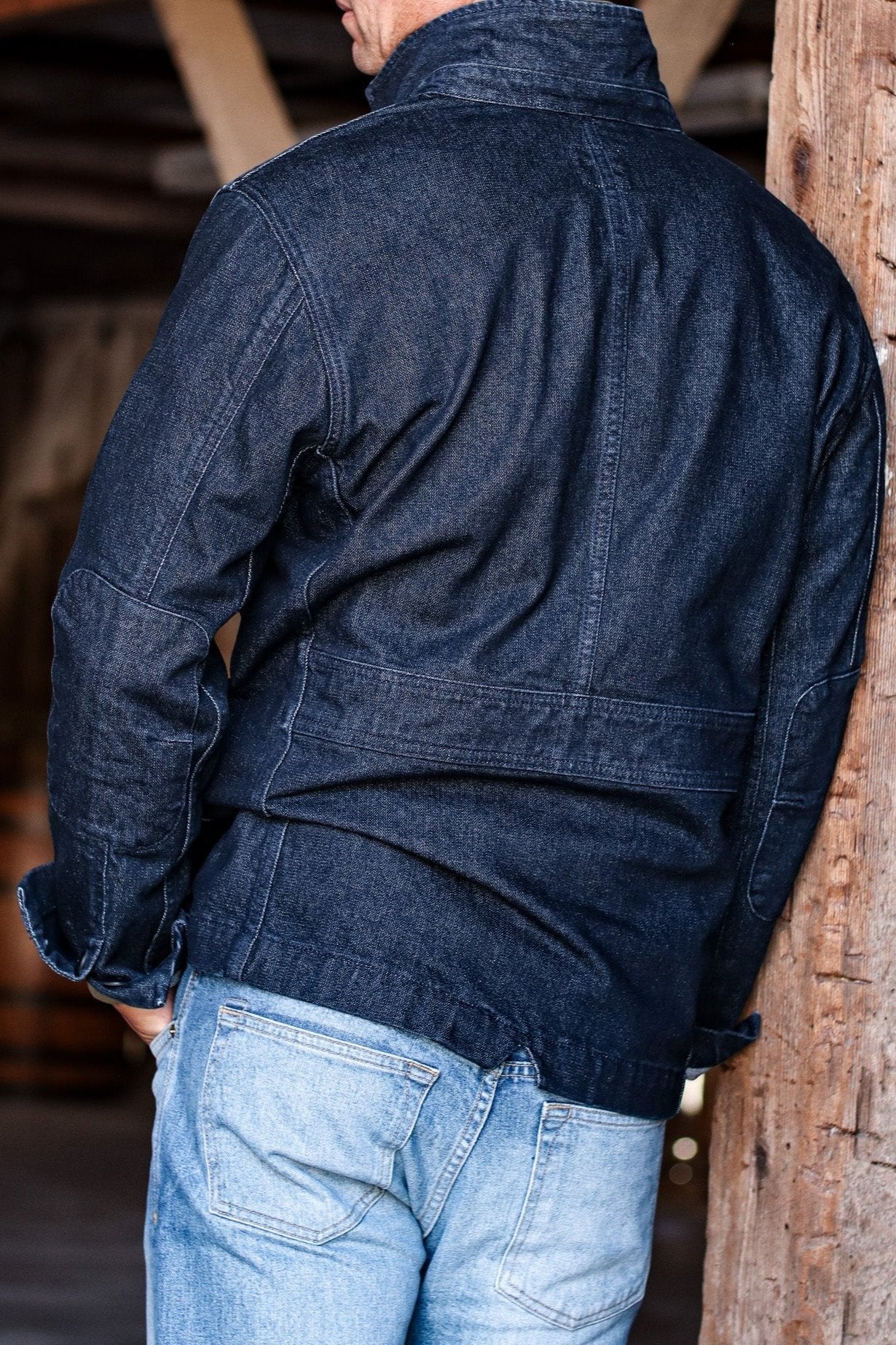 This denim chore coat was designed to step up your jeans & tee game! Rugged stretch denim enables a durable and comfortable fit. Inspired by our favorite vintage work and hunting jackets, we use 14oz broken twill denim from the 175-year-old Mount Vernon Mills in Georgia. Flat felled seams throughout give extra strength. Functional button openings at cuff, double layered elbow patches and our signature tobacco key holes. Large patch pockets for your hands and inside chest pocket. Finished with clean seam arm holes and our buttons made in Connecticut. A stone wash breaks in this rugged denim, while maintaining the durability.
