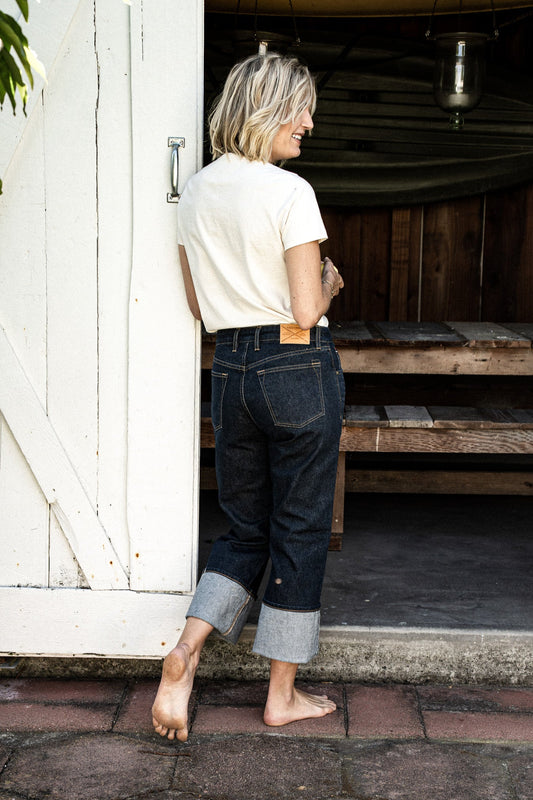 Women's premium denim & knitwear; Farmed, Milled & Sewn in the USA.