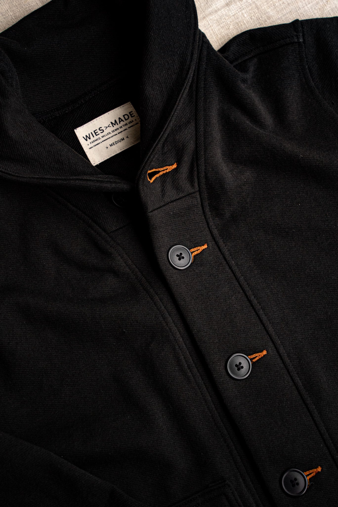 Crafted with premium natural fiber, our 14oz French Terry is no lightweight. 100% Premium combed and ringspun American cotton. Knit tight for long wearing durability and a more flattering fit. The diagonal knit adds a subtle texture on the facing. Our family run knit mill is Higgs certified and uses a recycled water process for dye to minimize water usage.The buttons for our shawl collar cardigan are made in Connecticut. Cut and sewn in our family-run shop in Los Angeles, California.
