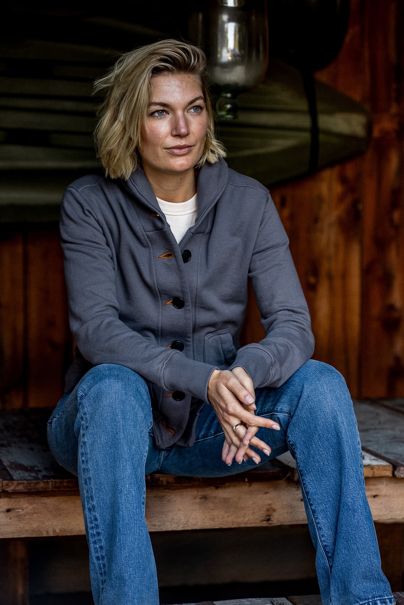 Step it up from a hoodie with comfort and practical style. 140z Diagonal knit creates a textured facing with soft premium cotton French terry on the inside. Double stitched seams for timeless quality with a hint of structure that keeps you looking sharp. Contrast keyholes in the same tobacco thread we use for our jeans. True to size with a bit of extra length in the body. We knit our French Terry to have a bit more weight and structure to improve the drape and ensure a flattering look.