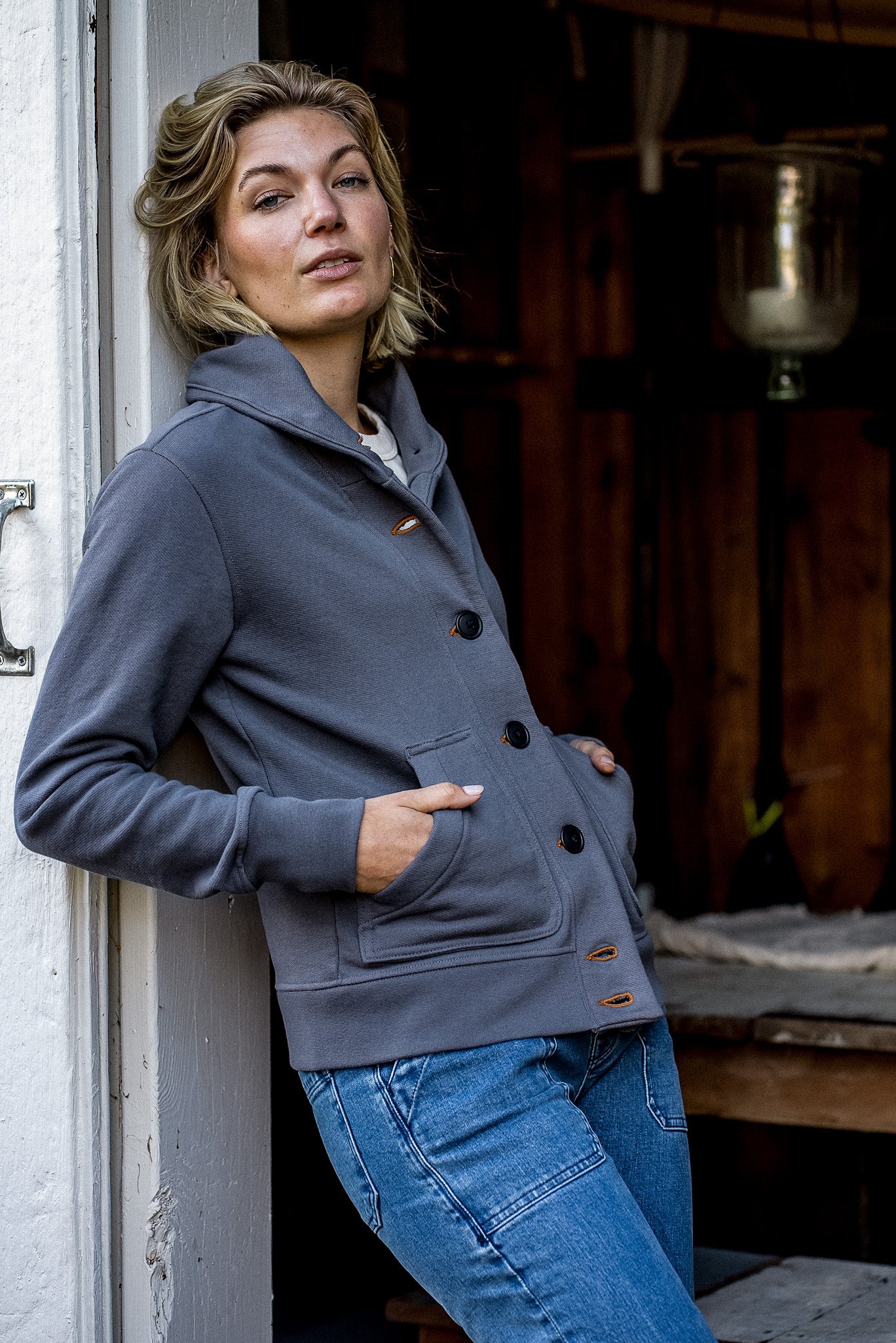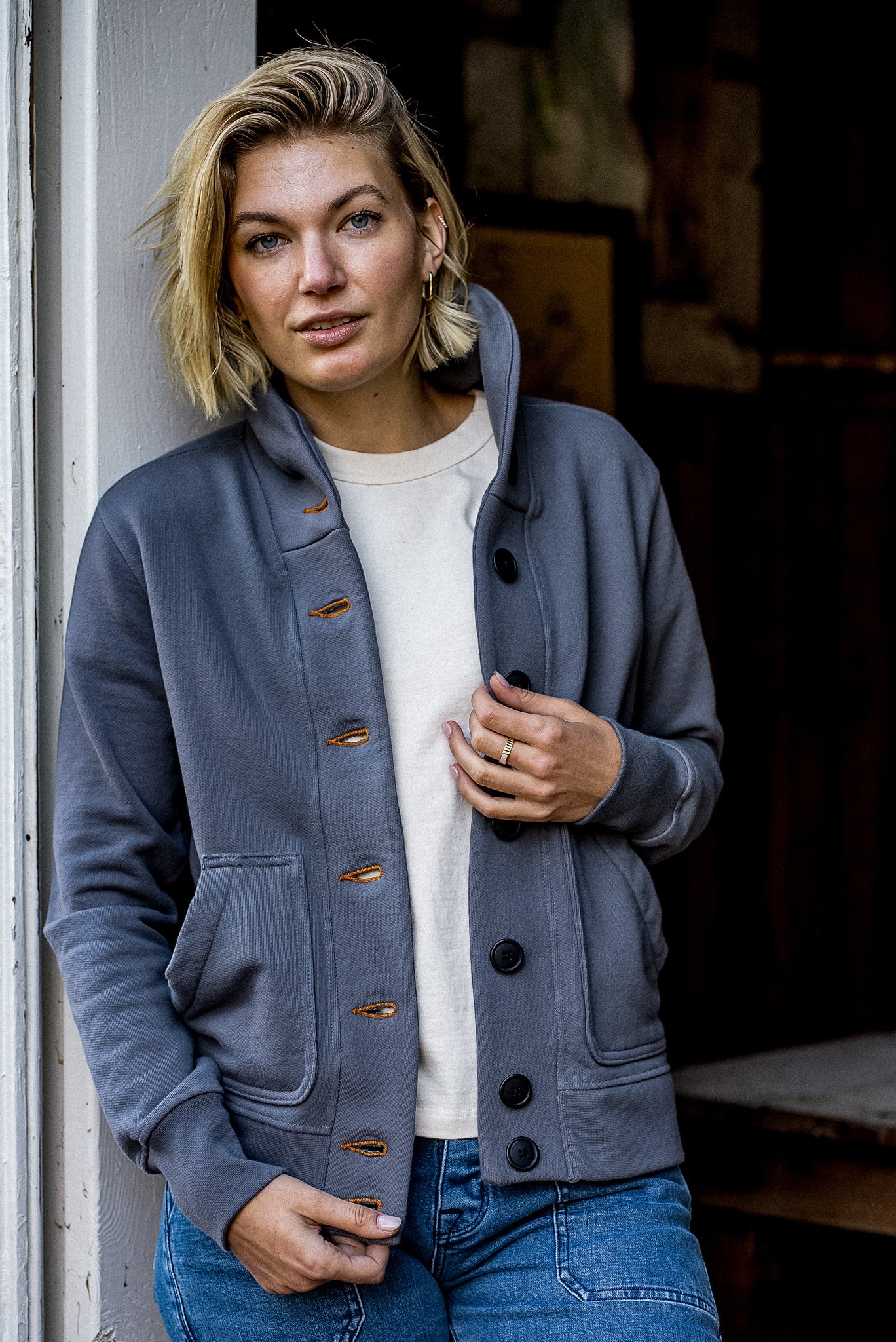 Crafted with premium natural fiber, our 14oz French Terry is no lightweight. 100% Premium combed and ringspun American cotton. Knit tight for long wearing durability and a more flattering fit. The diagonal knit adds a subtle texture on the facing. Our family run knit mill is Higgs certified and uses a recycled water process for dye to minimize water usage.The buttons for our shawl collar cardigan are made in Connecticut. Cut and sewn in our family-run shop in Los Angeles, California.